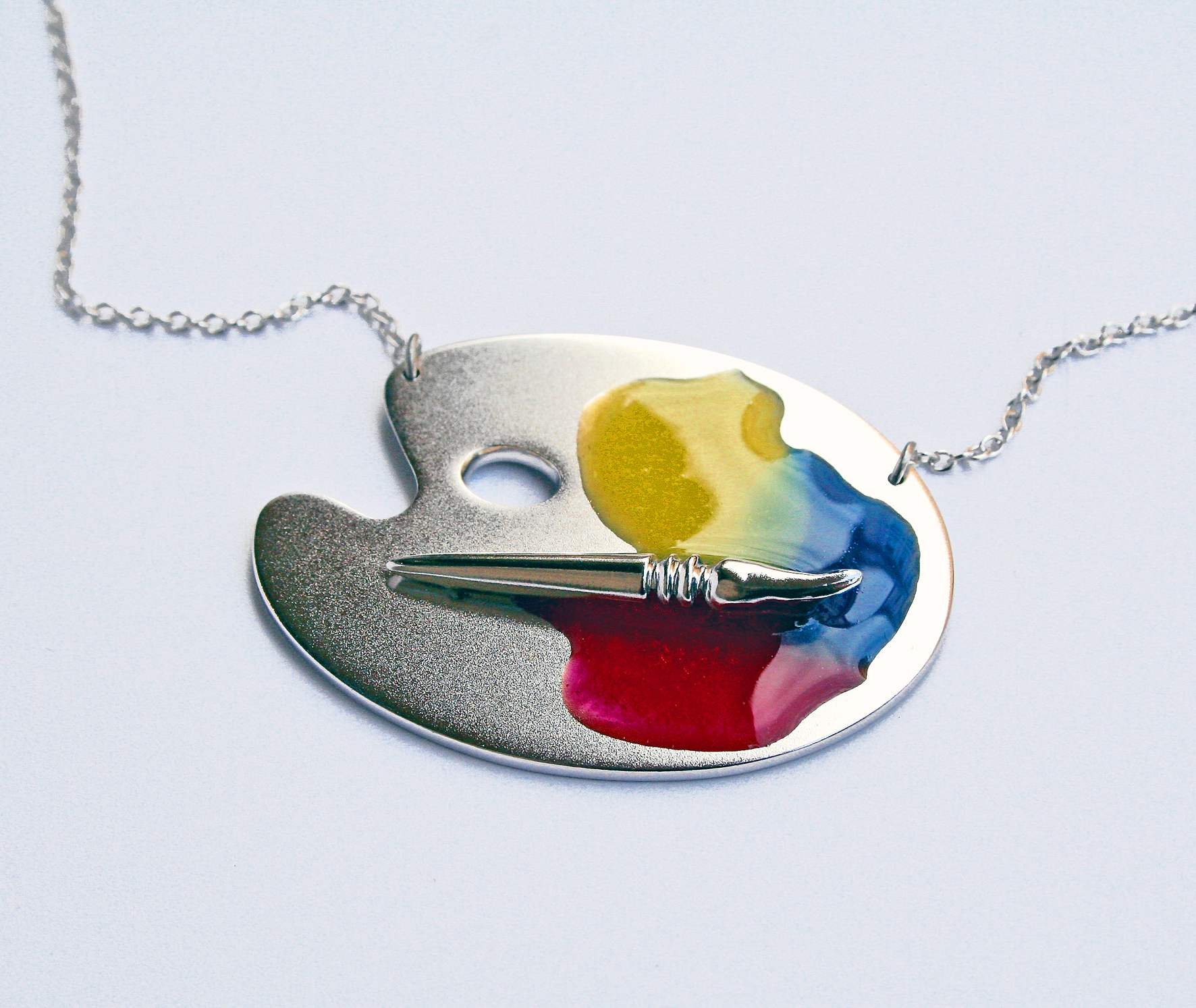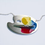 Collier palette de peintre en Argent rhodié* et résine.