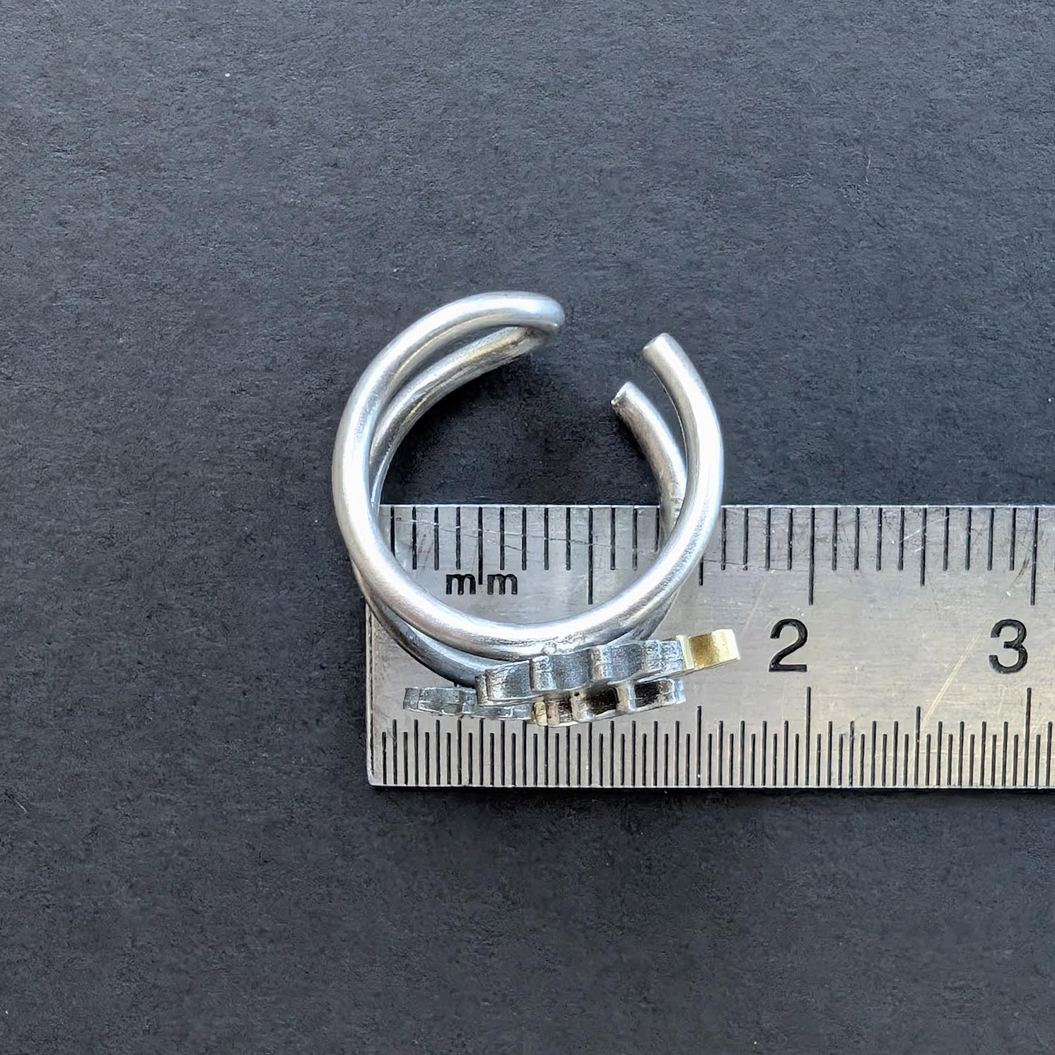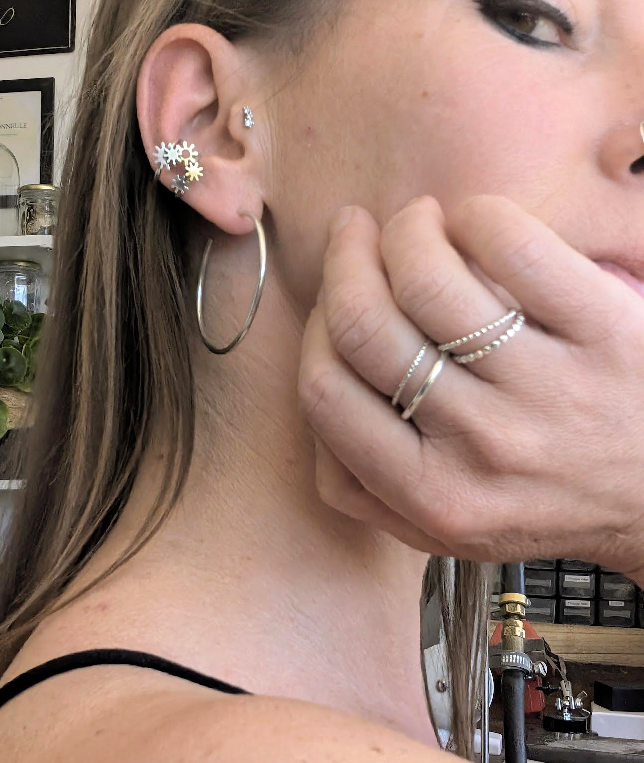 Manchette d’oreille, appelée aussi ear cuff  cette boucle d’oreille se pose sur une oreille percée et non percées. Réalisée en Argent 925 et laiton.