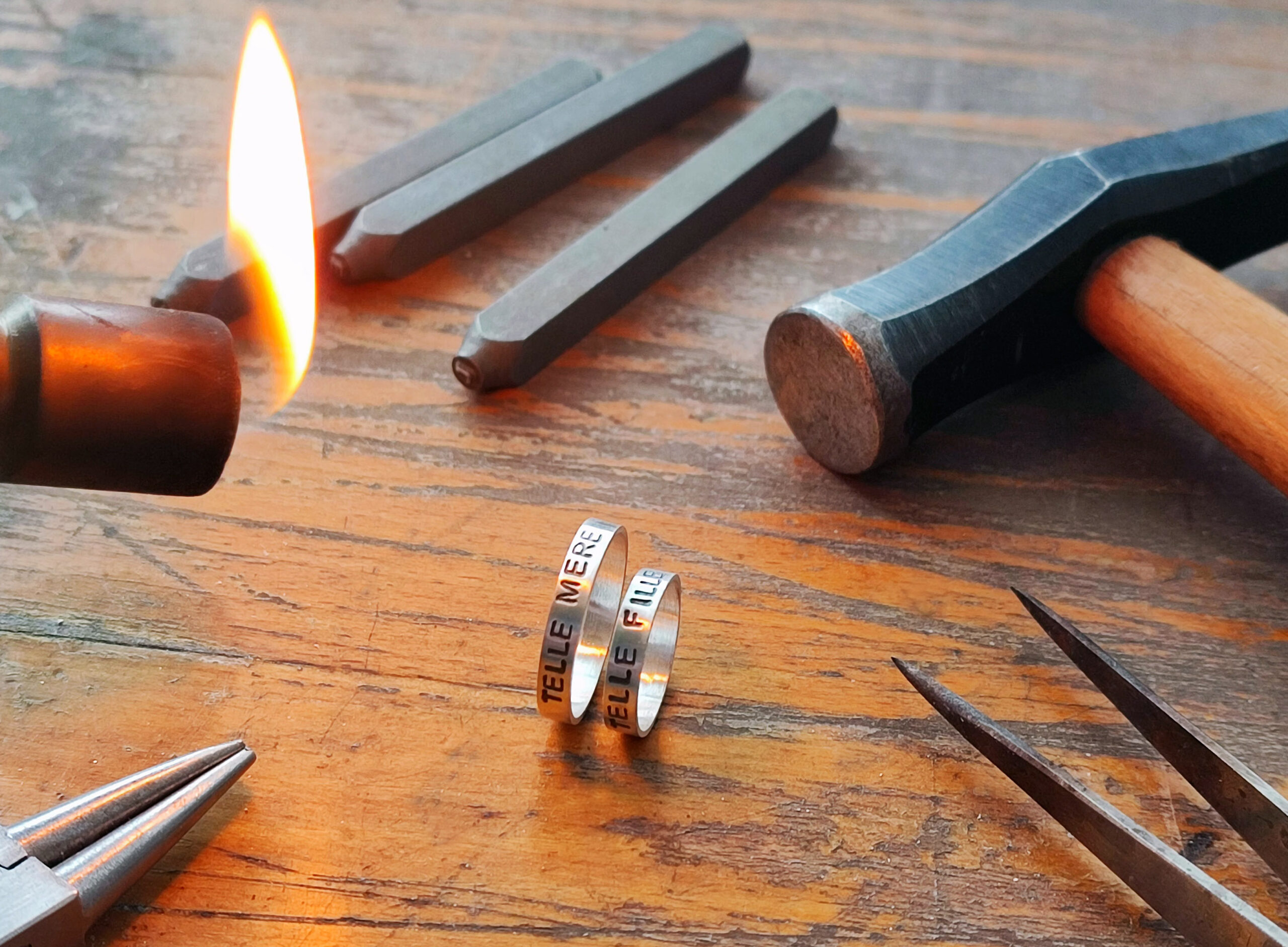 Après une découverte des outils de l’atelier et quelques essais sur du laiton pour vous familiariser avec les gestes, vous passerez à la personnalisation de votre propre bijou : bague, bracelet ou collier, selon vos envies.